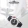 Relógio Thunderbirds Air Craft STEELS 23, movimento Seagull TY 2867 com corda automática, resistente à água 3ATM, único fuso horário, digitos luminosos. Caixa 14 milímetros de espessura e largura 43 milímetros em aço inoxidável, pulseira legítimo couro 22 milímetros de largura. A caixa de relógio (exterior: estampa de búfalo, cor PRETA com costura ornamental branca) vem com o seguinte conteúdo: 1x Thunderbirds Air Craft Watch STEELS 23, 1x pulseira legítimo couro, 1x Ferramenta para barra de mola feito na Suíça, 1x Lupa de relojoeiro, lente de vidro com anel.